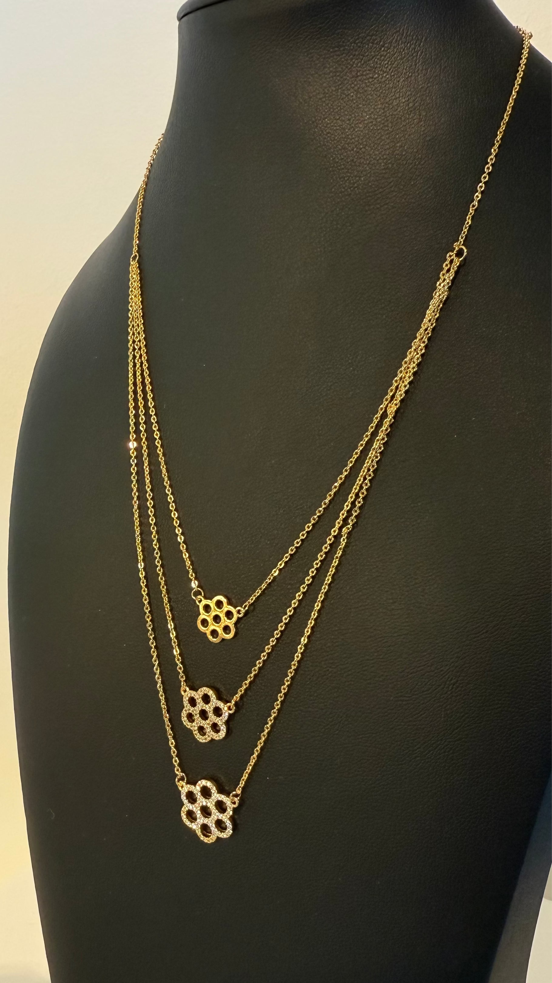 This three layers necklace is crafted from gold-plated brass with high-quality plating for a radiant, long-lasting finish. It is tarnish-free and water-resistant, making it perfect for everyday wear.